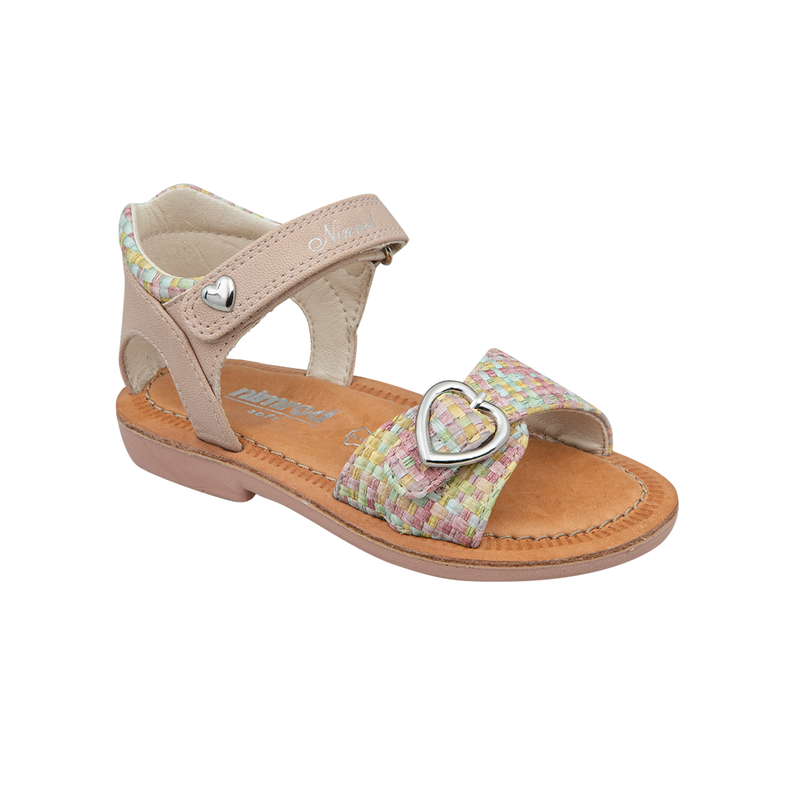 סנדלים בדגם 'תנכ'י' משודרג. גפה בהדפסי לבבות ענוגים, גווני פסטל רכים, בטנה מנדפת זיעה וסוליה איכותית במיוחד.