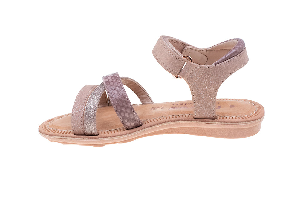 סנדלים ייחודיים המשלבים בין כל העולמות האופנתיים: פסי איקס אלכסוניים, רצועות בגדלים משתנים, ניגודיות של מטאלי ומבריק וטוויסט בין חלק לרקוע.