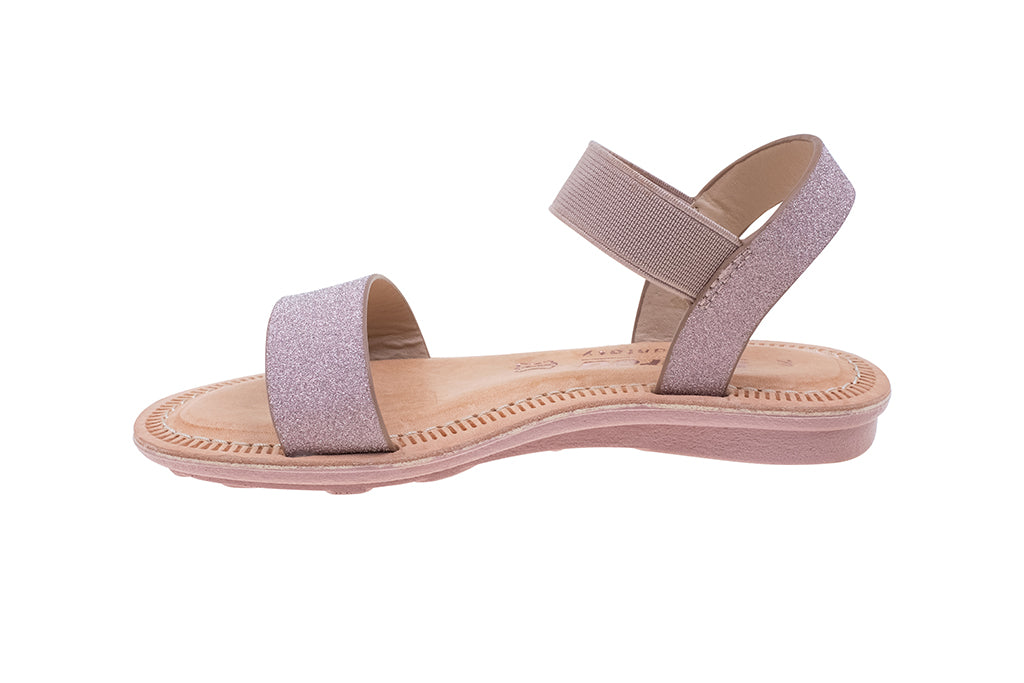 סנדלים מטאליים אופנתיים עם טוויסט נוח במיוחד: רצועת גומי עבה המאפשרת לנעול את הנעל בזריזות בכל רגע שמתחשק.