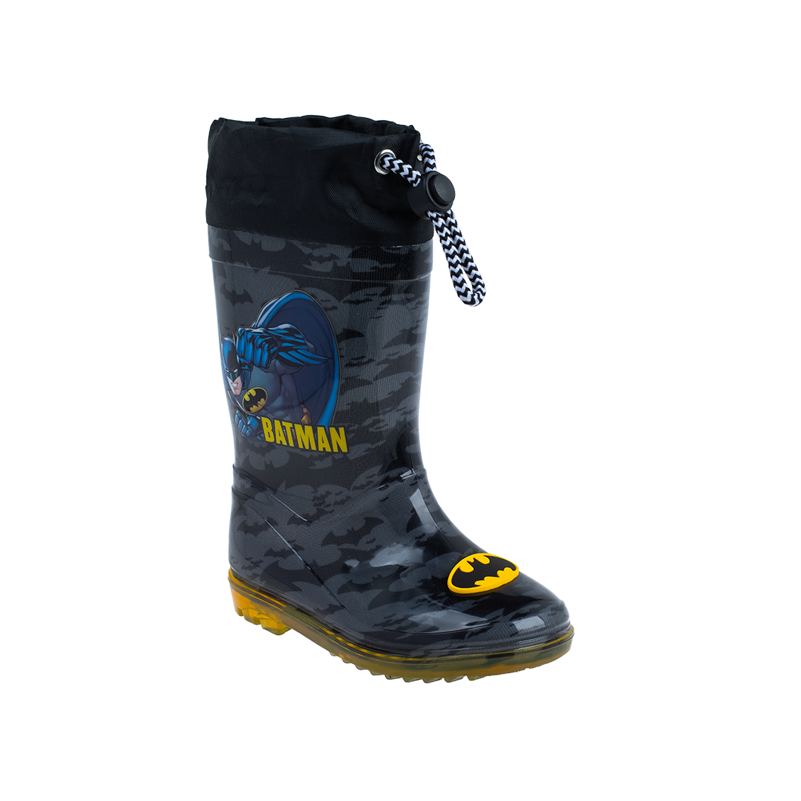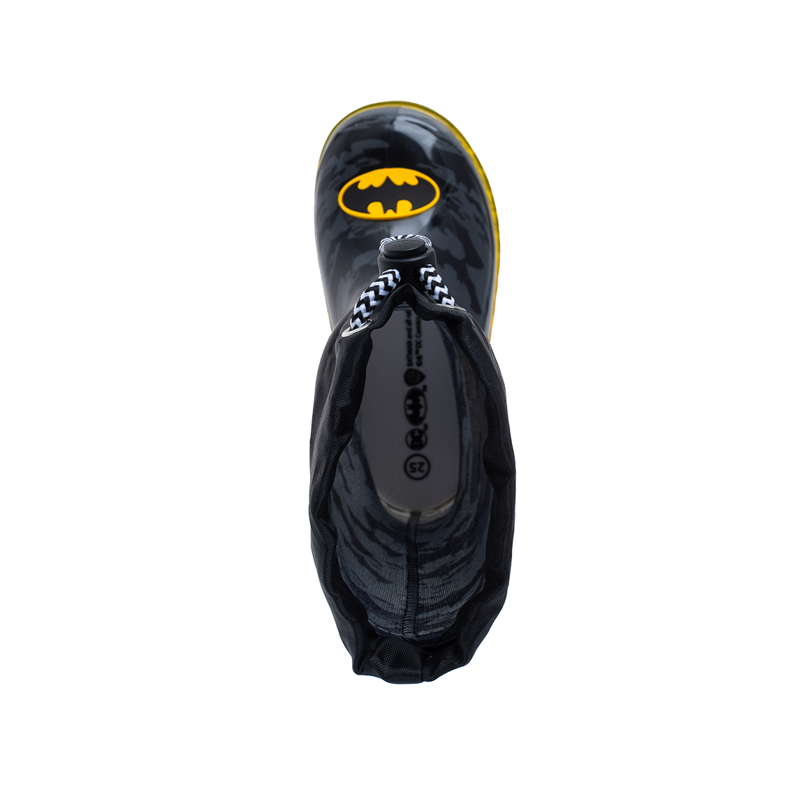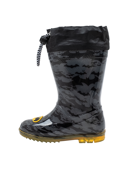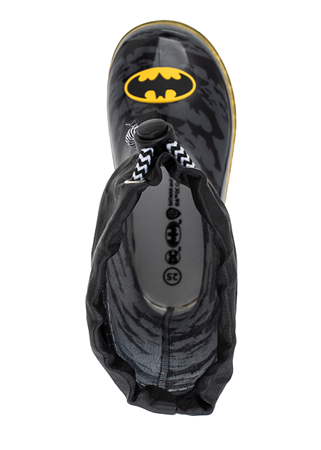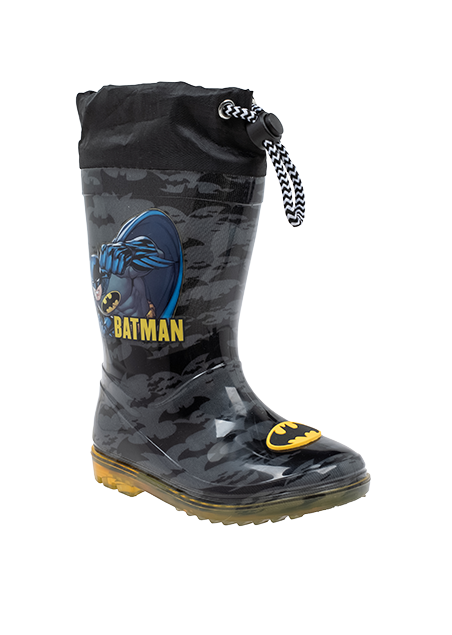 מגף גומי בהדפס מגניב של באטמן איש העטלף הכי מסתורי בסביבה שעושה חשק לקפוץ בין השלוליות.