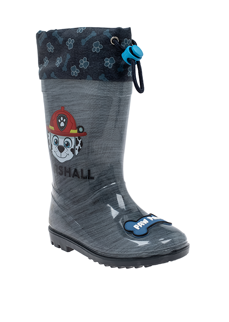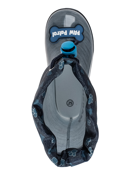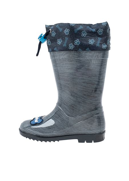 מגף גומי עם הדפס של הכלכלבים הגיבורים ממפרץ ההרפתקאות, שעושים חשק לקפוץ בין השלוליות.