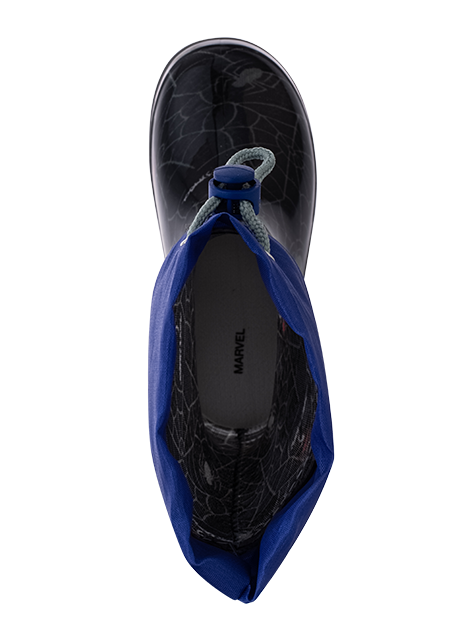 מגף גומי בהדפס מגניב של ספיידרמן איש העכביש שעושה חשק לקפוץ בין השלוליות.