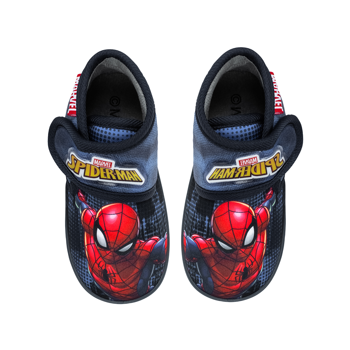 נעלי בית מחממות חובקות קרסול עם הדפס ספיידרמן איש העכביש האהובה על הילדים.