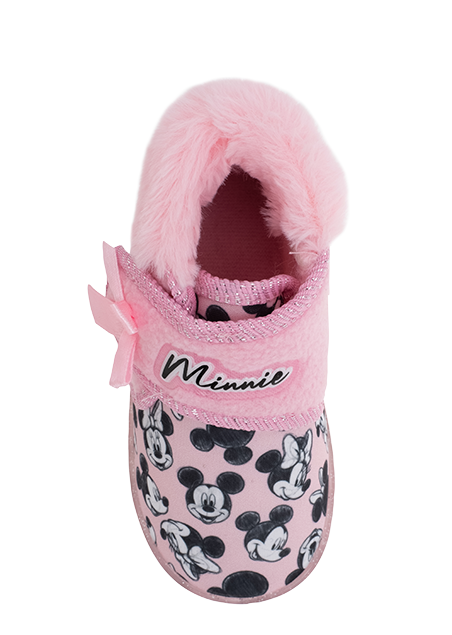 נעלי בית עם הדפס של העכברה המפורסמת והמגניבה מיני מאוס. חובקות את הקרסול, מחממות ועוטפות את הרגל ומאובזרות בפרווה חמימה.