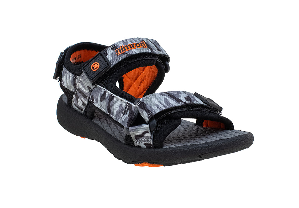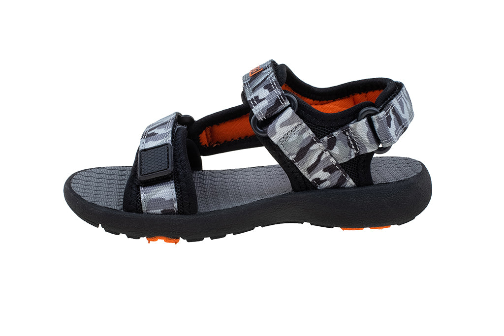 מהיום הטיולים נראים אחרת! סנדלים פתוחים במראה ספורטיבי אופנתי עם סוליה נוחה, גמישה, קלת משקל ורצועות טקסטיל בהדפס קמופלאג' הניתנות לכוונון מלא.