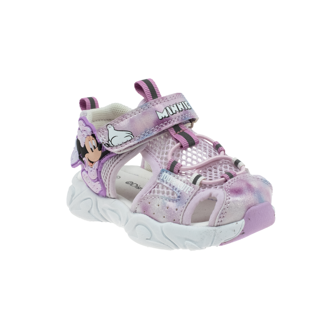 סנדלים ספורטיביים לקטנטנות במתיקות על חלל. הפרטים הקטנים שעושים את ההבדל: המיתוג של מיני מאוס, הגפה הקלילה העשויה רשת וגוון הלבנדר שכל כך נכון לעונה.