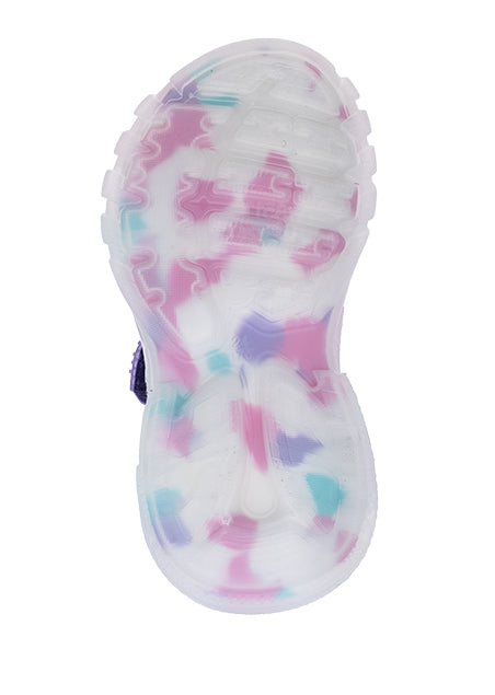 הסנדלים שיגרמו לכל ילדה להרגיש זוהרת! העיצוב המיוחד משלב בין העולם הספורטיבי לעולם הקסום והפרטים הקטנים כמו הרצועות הצבעוניות, הכיתובים המגניבים והלבבות שמשלימים את הלוק הכללי.