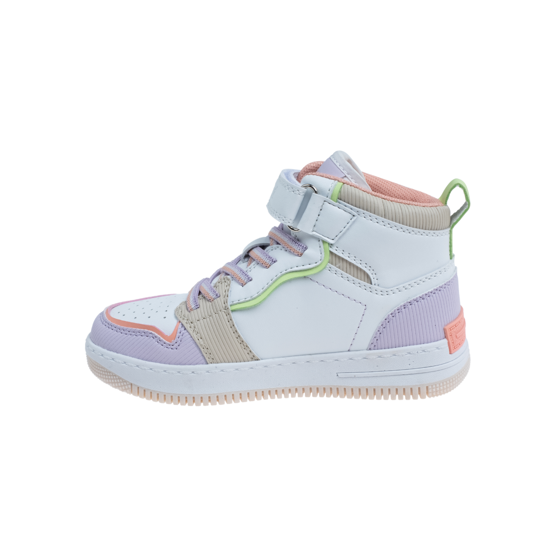 נעלי ספורט אופנתיות שמחזירות אותנו 40 שנה במנהרת הזמן היישר לאולמות הכדורסל בשנות השמונים. הנעליים מוגבהות בחלקן האחורי לשמירה על הקרסול, ומשלבות גוונים טרנדיים  ותיפורים בולטים ללוק קלאסי עם טוויסט מגניב.