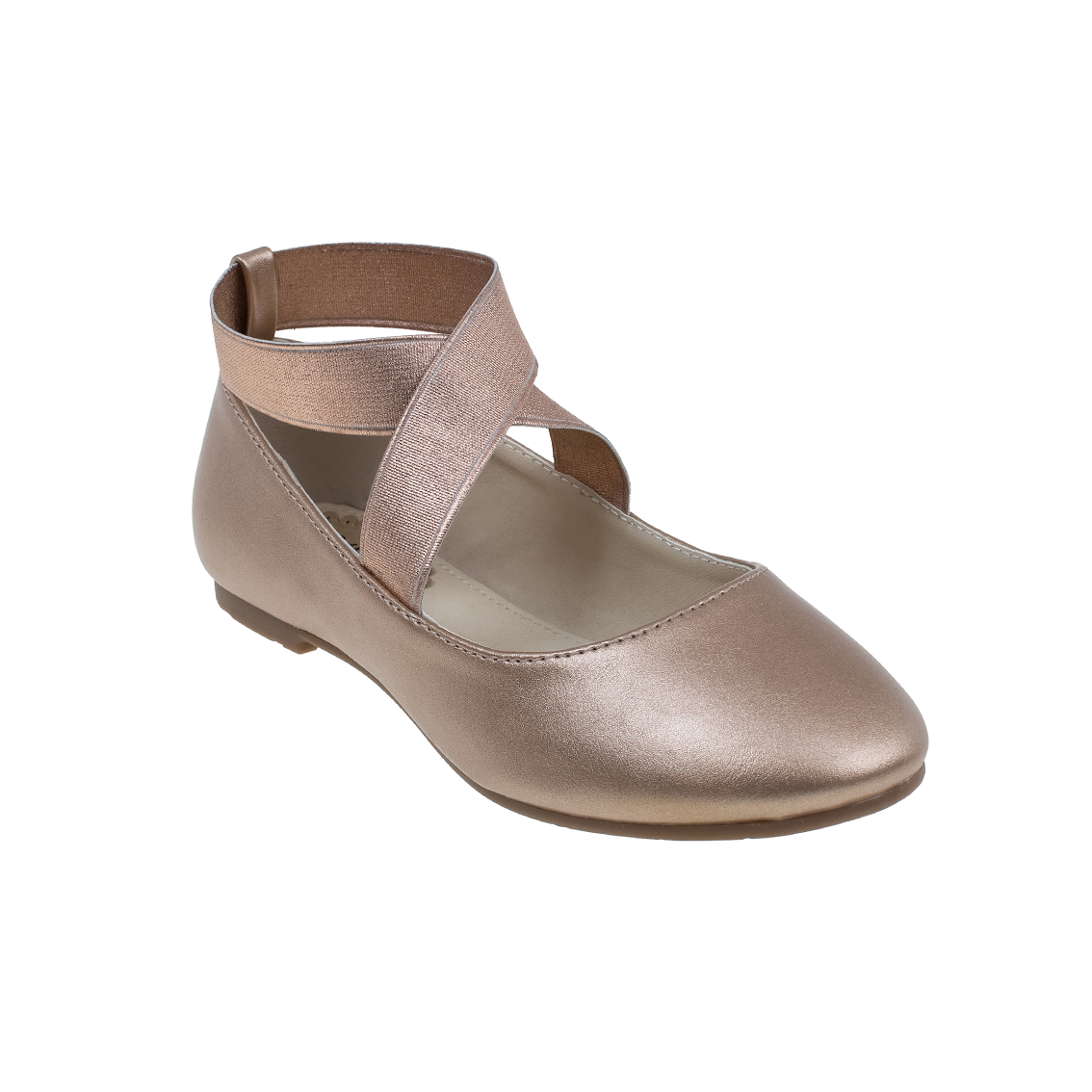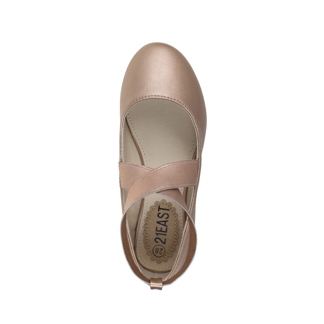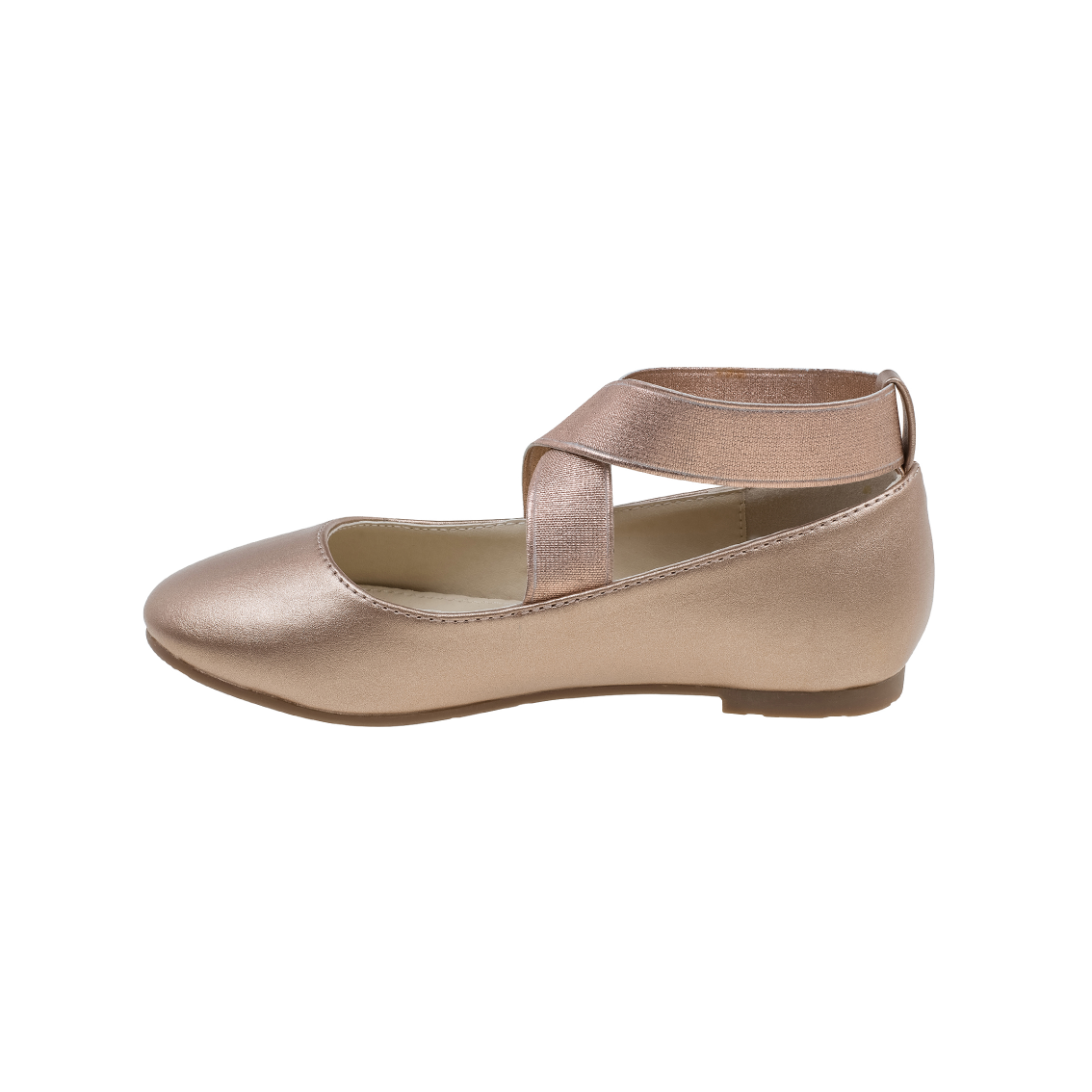 נעלי בלרינה מטאליות עם טוויסט ייחודי: רצועות גומי מצטלבות תואמות לאחיזה מושלמת של הרגל.