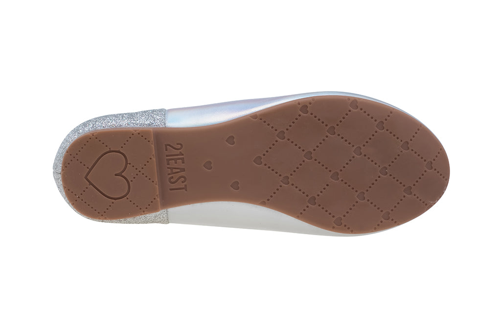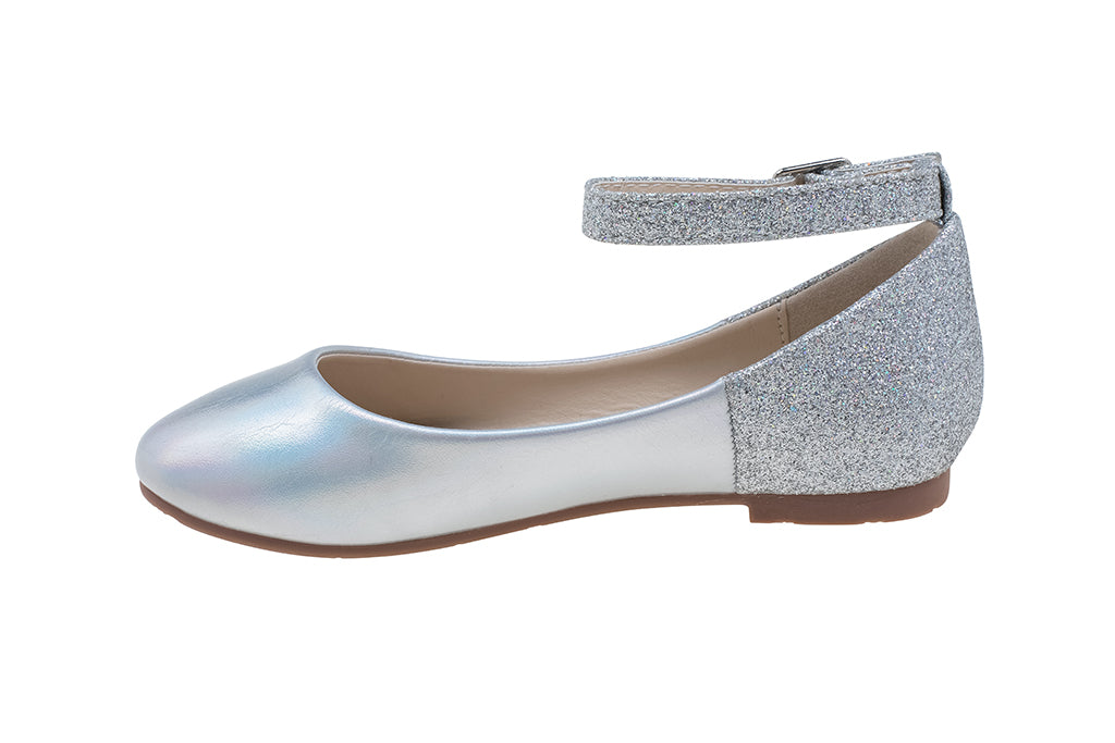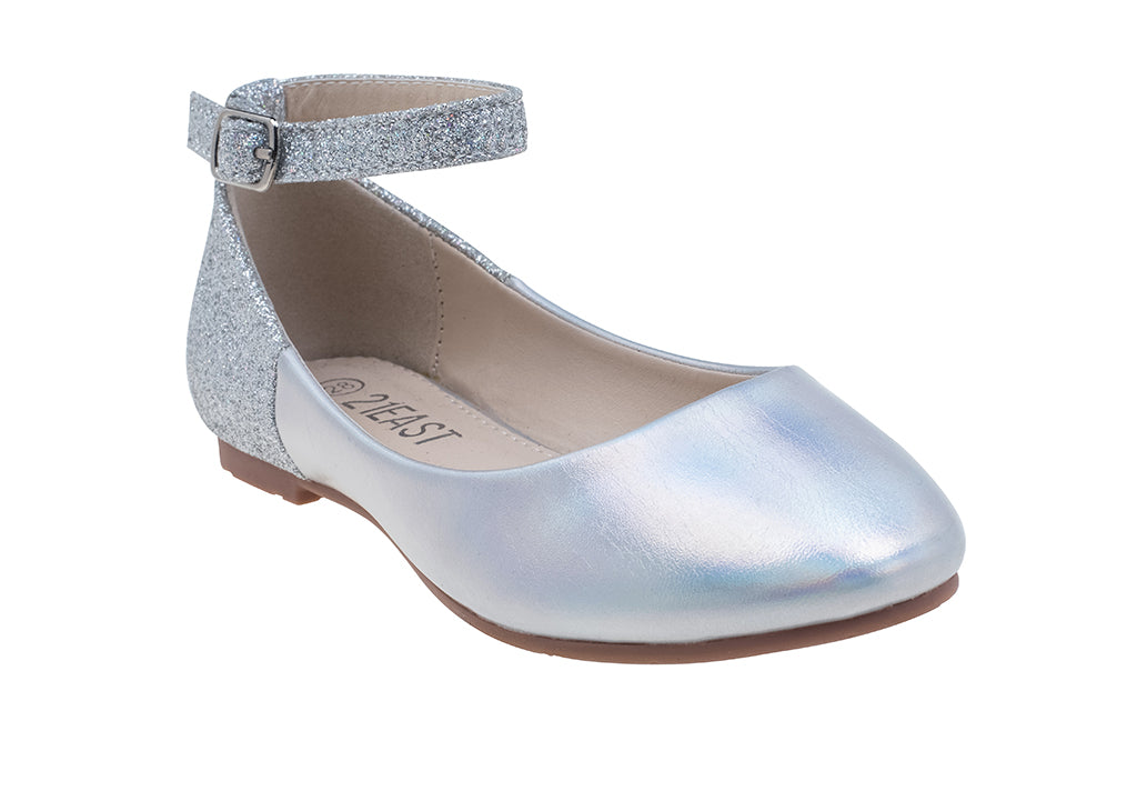 נעלי בלרינה עם סגירת קרסול למראה קלאסי. לטוויסט מחויך - גב הנעל משובץ בפאייטים טרנדיים.