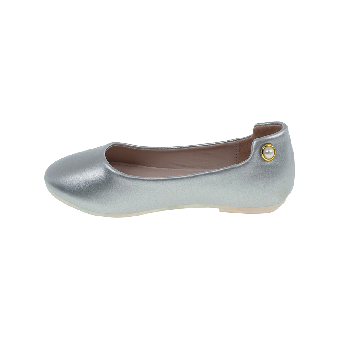 נעלי בלרינה במבנה ארגונומי החובק בצורה מושלמת את חלקה האחורי של כף הרגל. התוספת שתופסת: נגיעות פנינים בגב הנעל לקריצה אופנתית מושלמת.