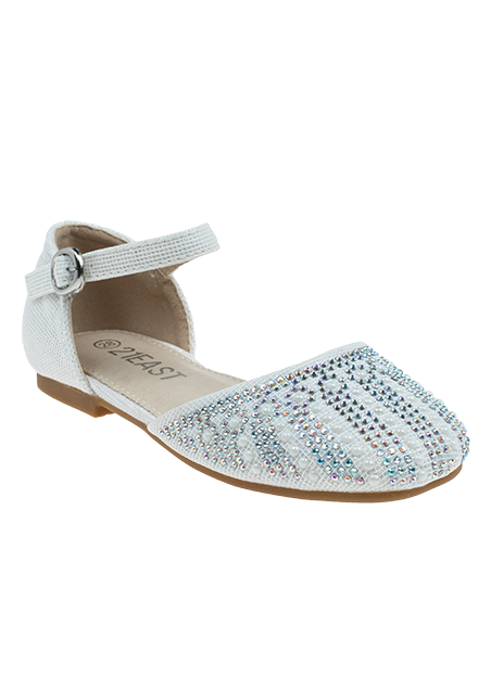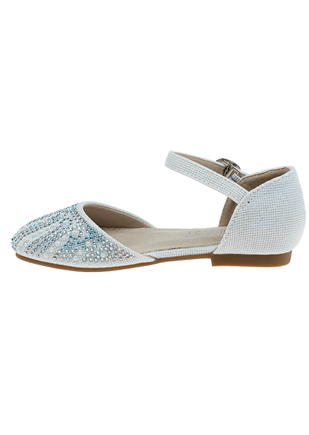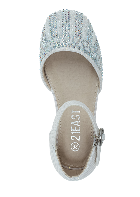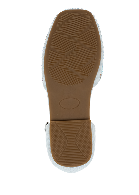 נעליים בלרינה ענוגות בסגנון בוהו שיק. הפרטים הקטנים שעושים את ההבדל: גפה ברקמה עדינה השזורה באבנים דמויי יהלומים ואבזם עליון המתכוונן לפי מידות הרגל ושומר עליה.