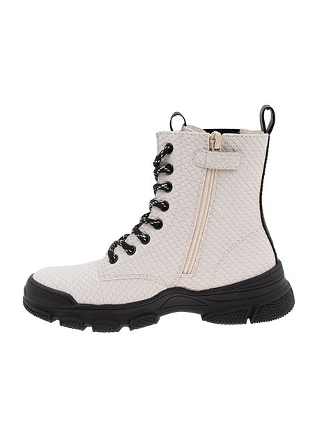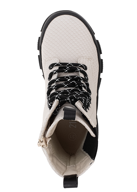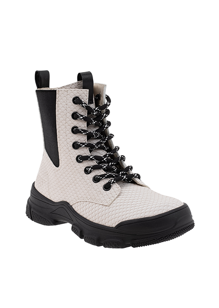 מגפון בעיצוב אורבאני בסגנון שנות ה-70. הפרטים הקטנים שעושים את ההבדל: גוון הפודרה האופנתי, השרוכים המעוצבים והרוכסן הצידי המקל על הנעילה והחליצה.