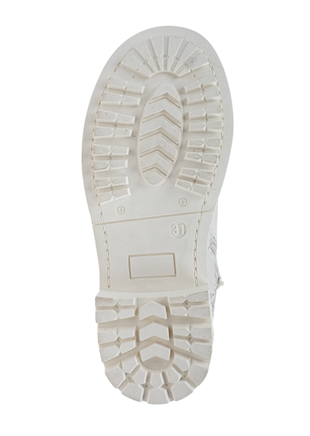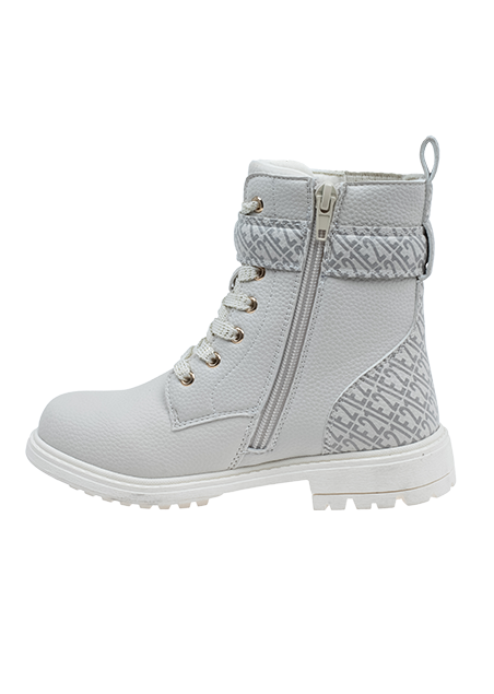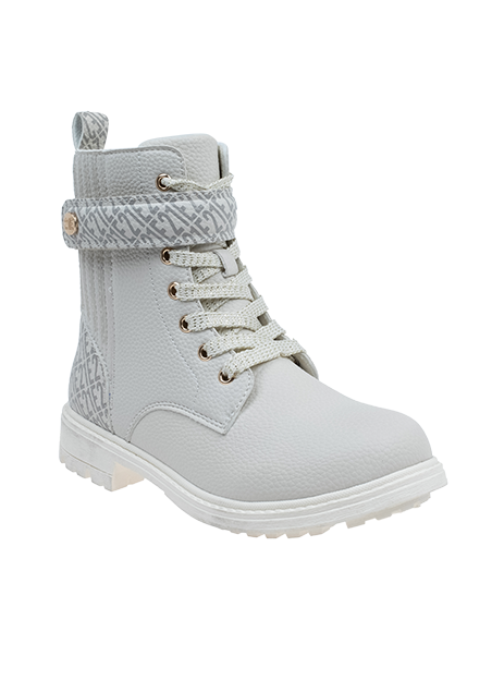 נעליים גבוהות בסגנון צבאי עם טוויסטים בעלילה: נגיעות של הדפסים גרפיים על הגפה ותוספת גומי מעוצבת ומגניבה.