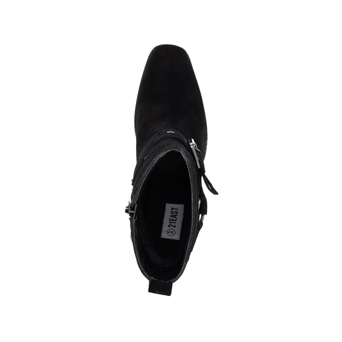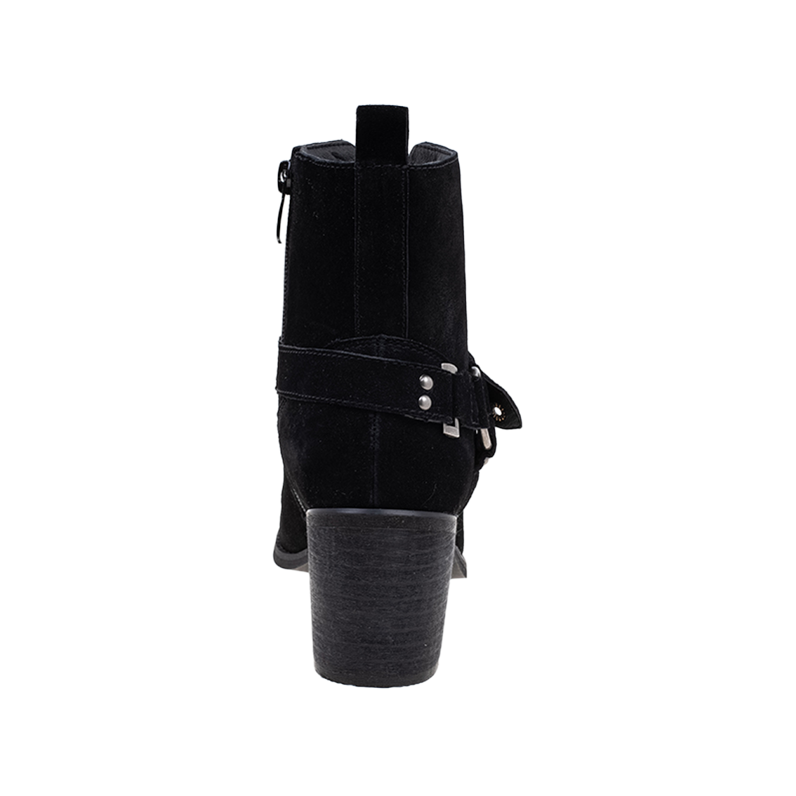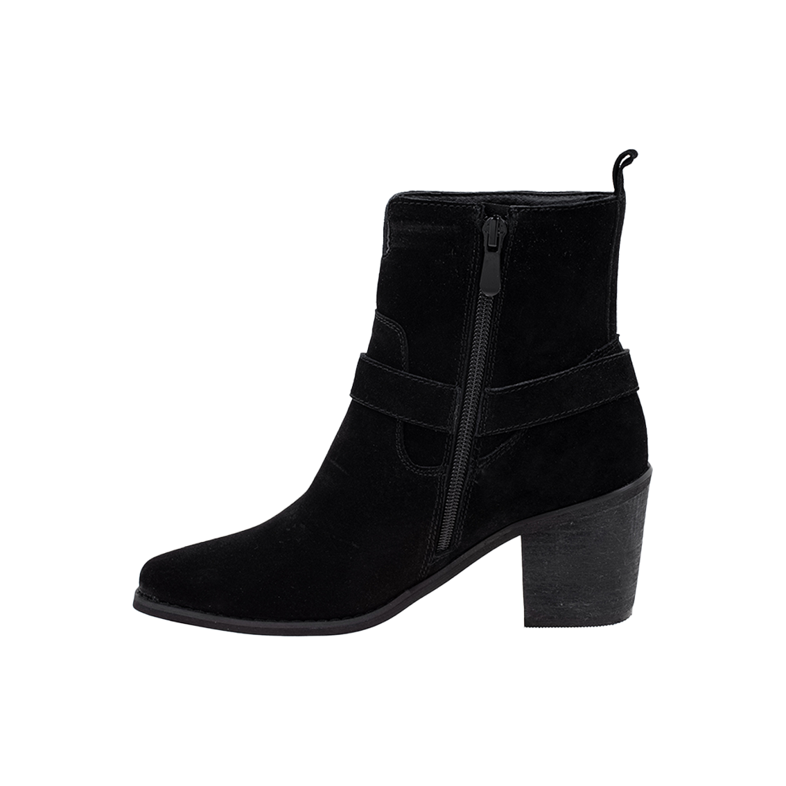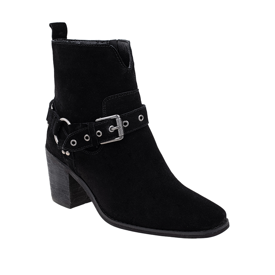 מגפון שחור שכל אישה צריכה בארון. עם עקב מרשים אך לא גבוה מדי, אימום מדויק ונוח ורצועה העוטפת את הנעל ומאובזרת בחורים מוכספים.