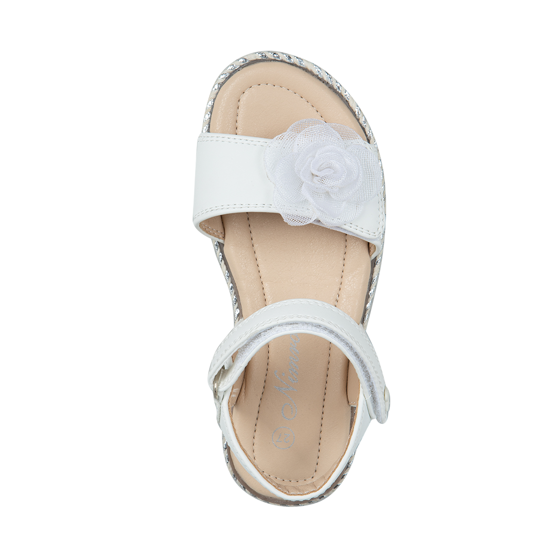 סנדלים במראה בוהו שיק חגיגי. הפרטים הקטנים שעושים את ההבדל: תוספת הפרח הייחודית וסוליית החבל המורכבת משילוב של שני גוונים טבעיים ומפזרת אבקת חופשה מסביב.