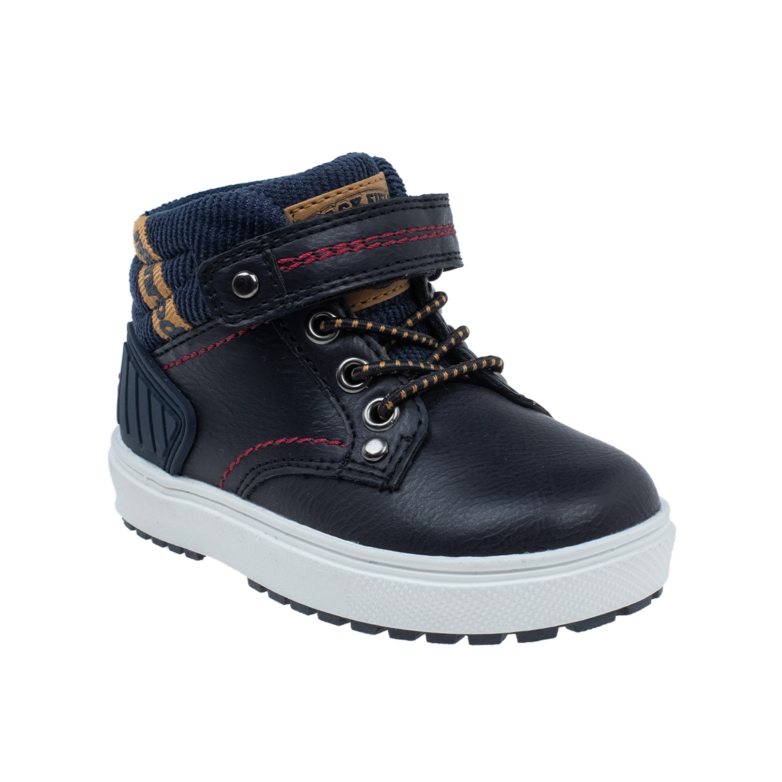 נעליים לקטנטנים שאוהבים לטייל בשכונה - אבל בסטייל. הפרטים הקטנים שעושים את ההבדל: הסוליה העבה והדומיננטית, התיפורים הצבעוניים על הגפה, שילובי הטקסטורות ובד הקורדרוי הנעים שחובק את הקרסול.