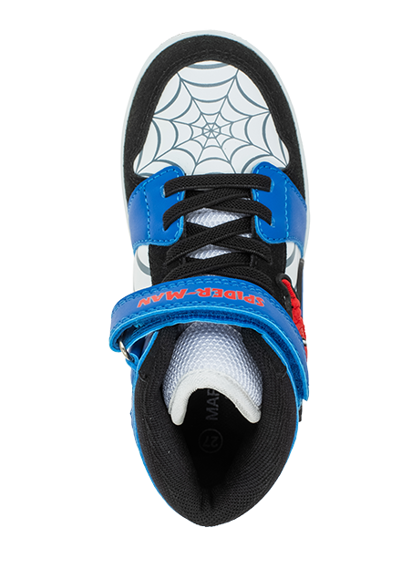 נעליים בגזרה אופנתית גבוהה לאוהבי ספיידרמן. העיצוב המיוחד של הגפה כולל הדפסת רשת ייחודית, תבליט מגניב של איש העכביש ושילובי צבעים המזוהים איתו.