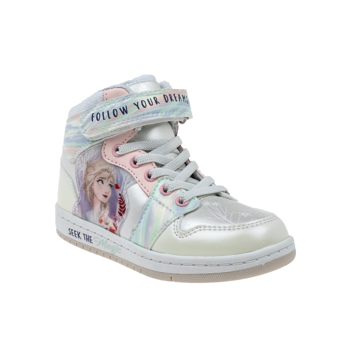 נעלי ספורט מעוצבות בגזרת ¾ גבוהה וייחודית. ההולוגרמה של אלזה, הגוונים מלאי החיים, הנצנצים שמפזרים תחושה נסיכותית וסגירת הסקוץ' המטאלית משווים לנעליים לוק חלומי במיוחד.