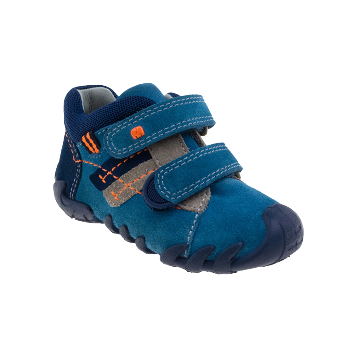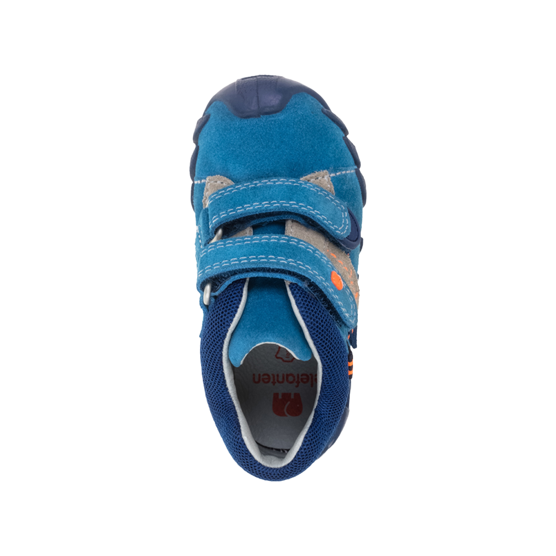 נעלי צעד ראשון עם גפה משולבת - עור הפוך (זמש) ונגיעות עור רגיל להגנה של כף הרגל ולמניעת שחיקה. הצבעוניות הייחודית משווה לנעל לוק אופנתי והצמדנים מאפשרים התאמה מרבית למבנה ולרוחב כף הרגל.