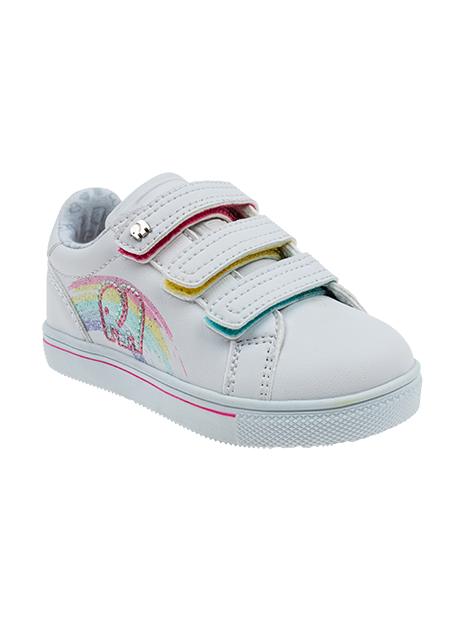 נעליים בדוגמת סניקרס טרנדית. הפרטים הקטנים שעושים את ההבדל: צבעוניות הקשת בענן שעוברת מהסוליה בנגיעה, לגפה כאיור ובסקוצ'ים כאלמנט מפתיע. המותג ELEFANTEN בלעדי ברשת nimrod&more.